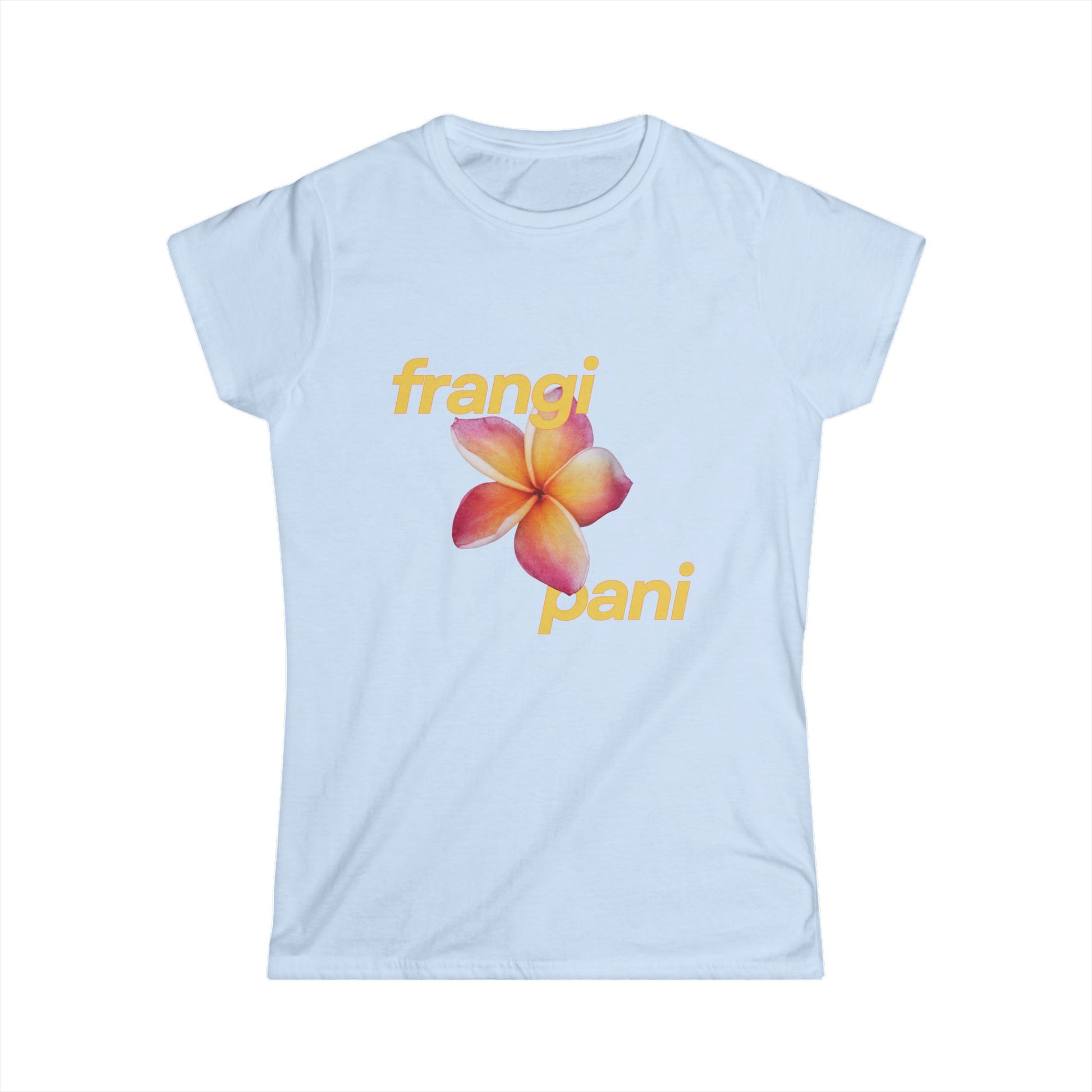 Fresh and exotic, the fragrant memories the frangipani flower evokes inspired this simple tshirt homage.